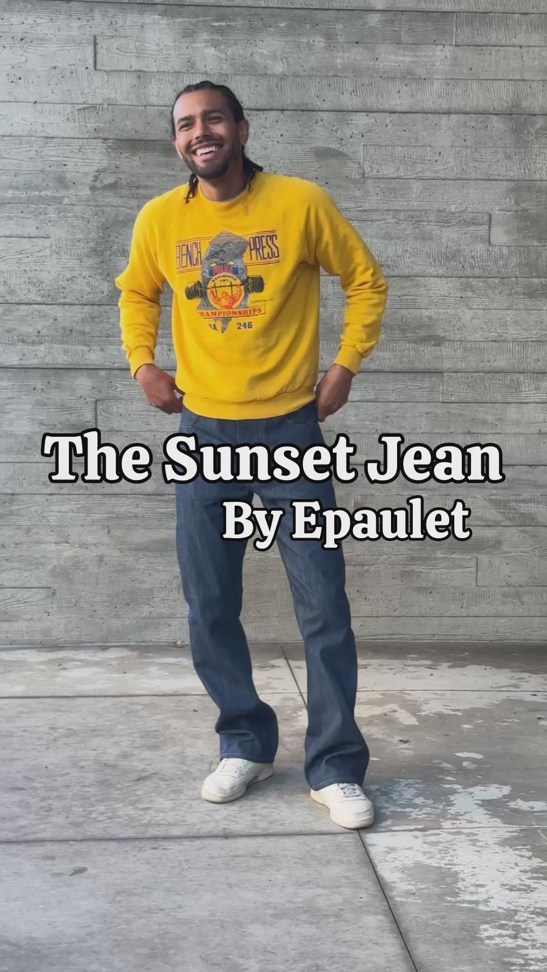 The Sunset Jean features bartacked seams, aged brass button front & button fly, front pocket rivets, genuine leather rear patch, and our signature rear pocket stitch detail.